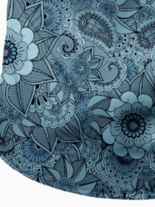 Bellerue - women's dress in cotton and linen with neckline and print oil painting